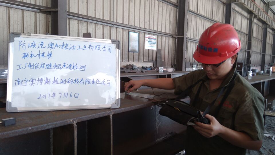 公司檢測人員7月6日在防城港澳加糧油工業有限公司新機械樓進行焊縫探傷無損檢測。